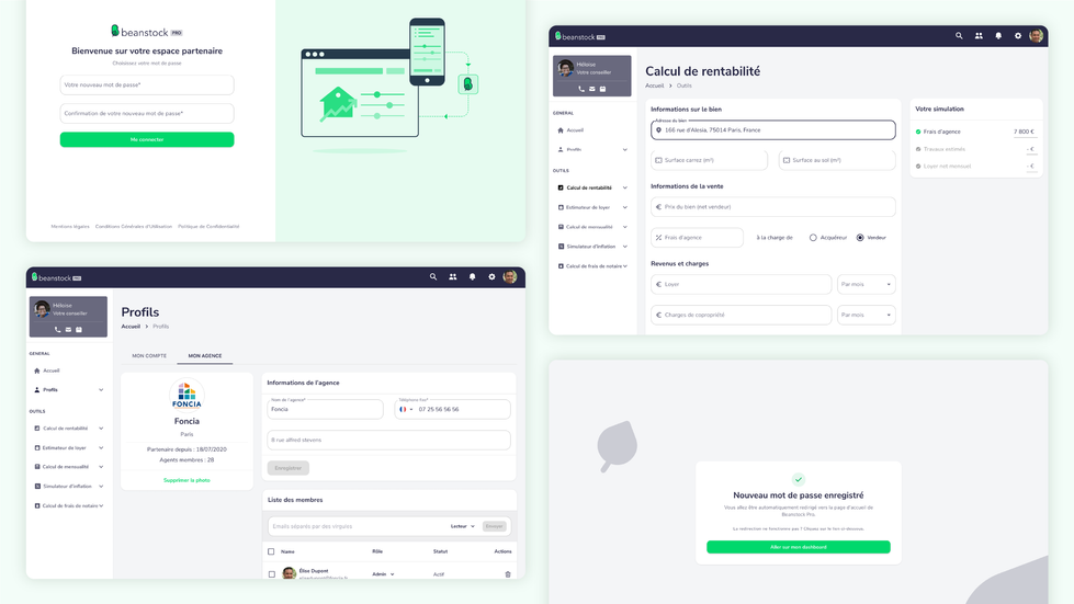 As a 'Founder Designer' at Beanstock, I led the creation of two key products: Beanstock.com, a platform for investors to find, finance, and manage real estate portfolios, and BeanstockPro Dashboard, a tailored SaaS product for real estate agents. The dashboard guides agents through property-specific questions to assess if a property meets Beanstock's standards, potentially resulting in listings on Beanstock.com for increased investor visibility.