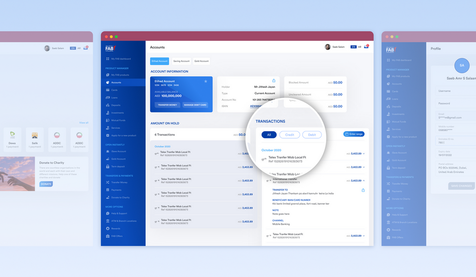 I was hired to redesign and revamp the existing dashboard and mobile app for FAB (First Abu Dhabi Bank), aiming to create a cohesive, user-friendly, and visually modern banking experience. The project focused on simplifying complex financial workflows and enhancing usability for both desktop and mobile users.